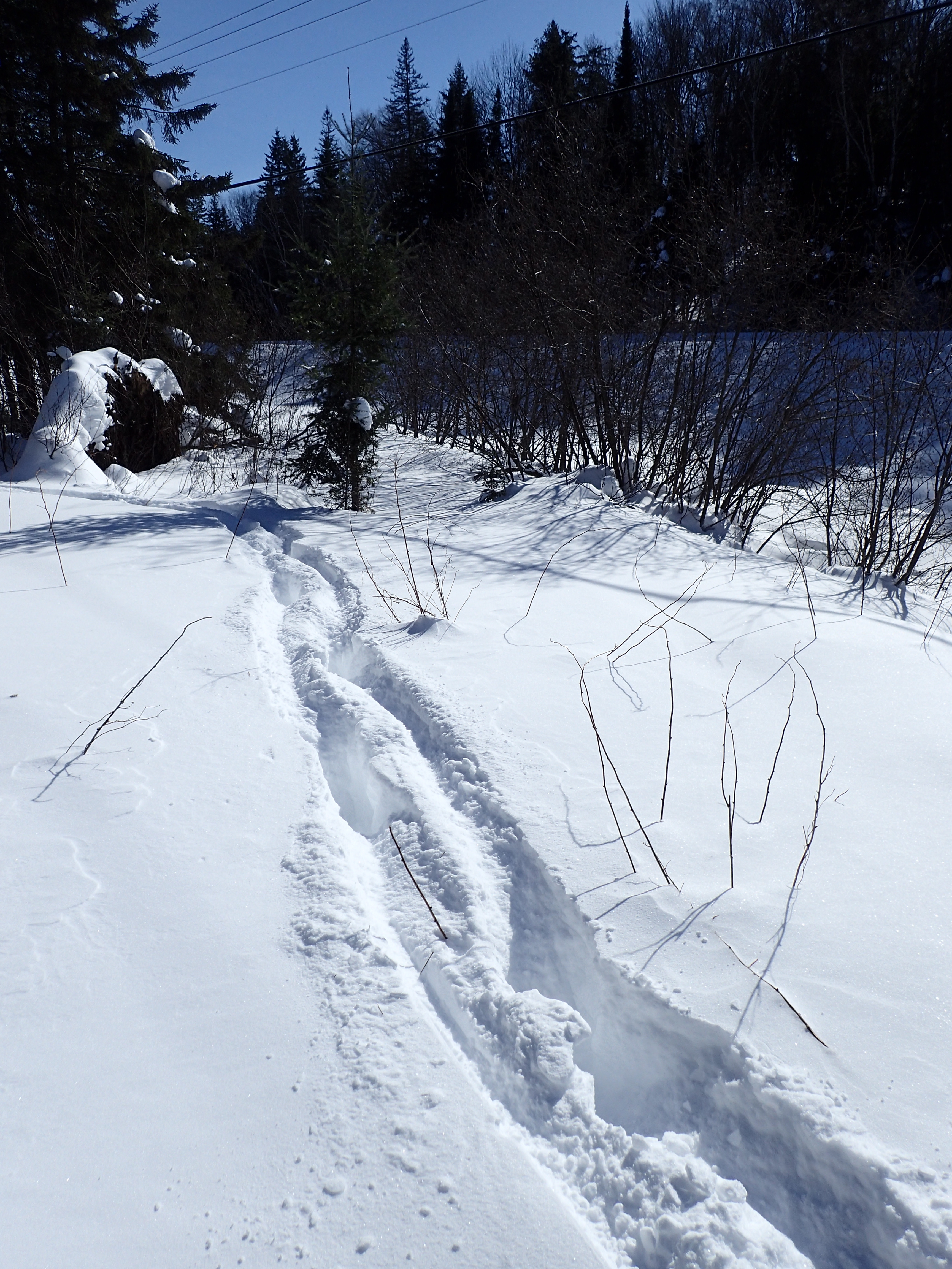 Moose trail through 3 foot deep snow. The bottom of the tracks is WAY down.