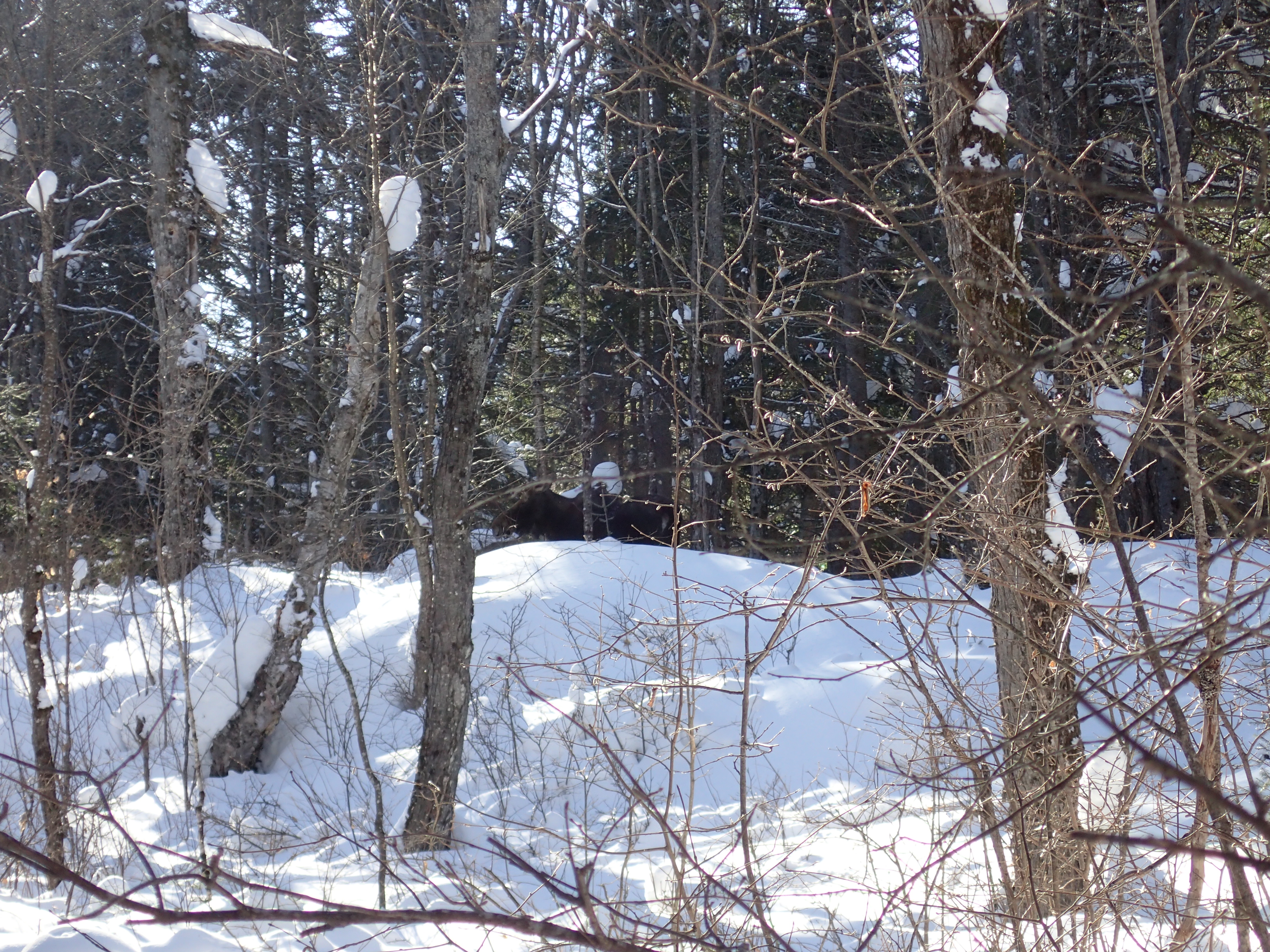 After several hours of quietly moving through the woods trailing the moose we caught up to them. They were very aware of our presence and pretty tolerant of us. Turned out to be three moving together, we knew there were at least two by the tracks. The video below explains more about the many minutes we spent with them.